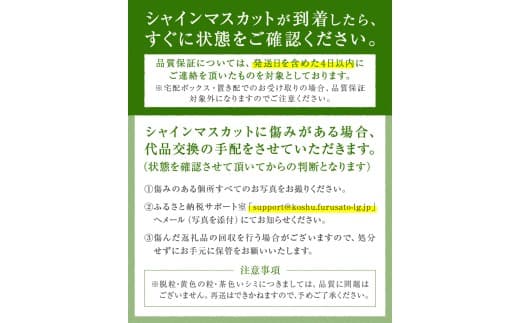 ■関連キーワード:シャインマスカット 2026年発送 約2kg 3房 果物 フルーツ 葡萄 ぶどう マスカット 果実 くだもの 産地直送 人気 冷蔵 クール 甲州市産 大粒 甘い 大きい 期間限定 9月 10月 発送 自然農法 贈答 ギフト 山梨県 甲州市 社員マスカット