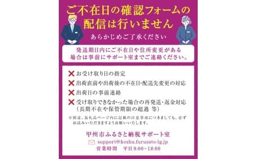 ※収穫時期により発送時期が前後するため、前もって発送日を確定しにくい状況や、寄附者様に良い状態で果物を楽しんでいただきたい思いから一定のルールを設けていることを何卒ご理解いただければ幸いです。